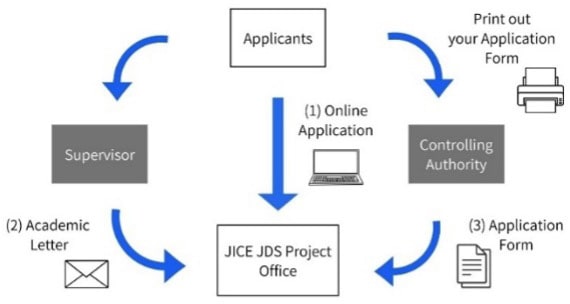 Important Note: The Submission of the academic letter from your supervisor, and the upload of "Permission Letter from the Controlling Authority" in the online application system or the submission of your application permission form from the Controlling Authority to JICE JDS Project Office will complete your application procedures.